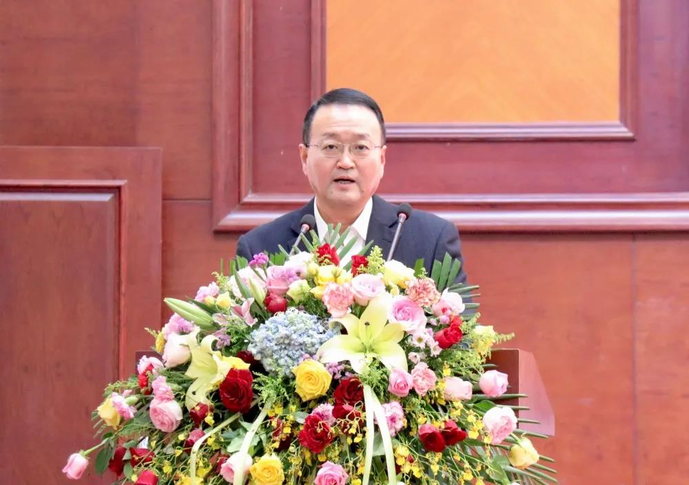 在热烈的掌声中,杨俊斌董事长代表集团董事会作题为《谋划新发展,实现新跨越,全力开辟富煌新篇章》的2021年度工作总结报告。