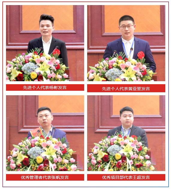 大会首先颁发了2021年度先进工作者奖、优秀新员工奖、优秀管理者奖、巾帼奖、红管家奖、先进班组奖、优秀项目部奖、先进集体奖、优秀分子公司奖、降本增效奖、优秀创新团队奖、最佳经济效益奖、科技创新奖。颁奖结束后,先进工作者代表交欣科技售前技术工程师杨彬、恒德公司制造部黄亚堃、优秀管理者代表富煌钢构营销中心张帆、优秀项目部代表工程管理公司王超、最佳经济效益奖获得单位代表富煌君达总经理苗小冬作典型发言。