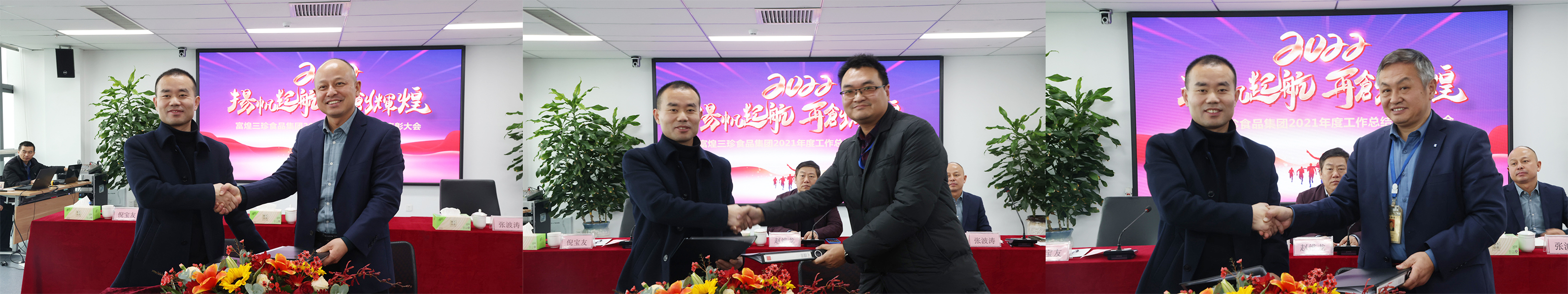 为圆满完成2022年各项经营指标任务,会上,富煌三珍进行了2022年度销售目标责任书签字仪式。富煌三珍董事长张波涛与总经理倪宝友,富煌三珍总经理倪宝友分别与富煌超市负责人韩继林、富煌水产负责人张厚群签订了《2022年度目标责任书》,进一步明确目标,夯实工作任务。