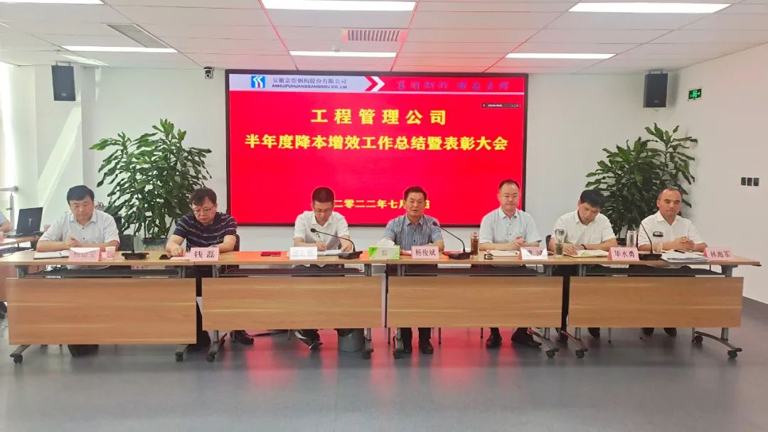 7月10日,安徽富煌钢构股份有限公司工程管理公司2022年半年度降本增效工作总结暨表彰大会在富煌大厦801会议室隆重召开,富煌集团董事长杨俊斌,富煌钢构董事长曹靖、总裁潘敬锋、常务副总裁毕水勇等领导应邀出席,工程管理公司全体项目经理及项目管理人员参加会议,会议由工程管理公司副总经理倪信主持。