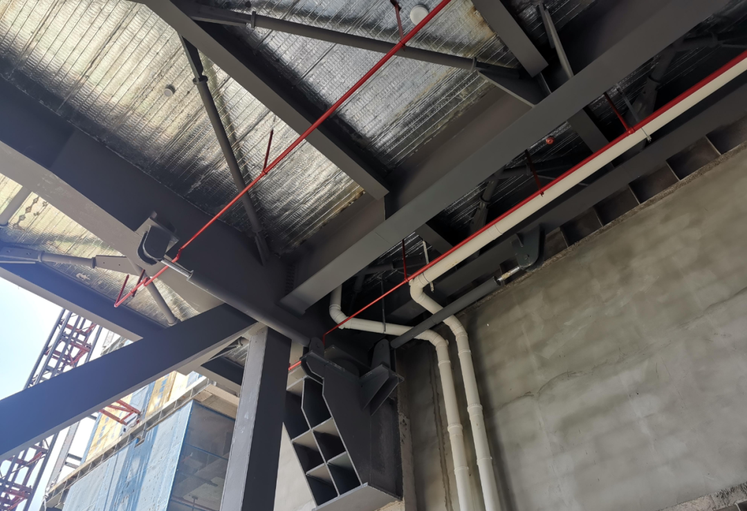 本项目全过程使用BIM 技术,用三维的方式将建筑信息集成到BIM 模型,从方案阶段到施工阶段实现信息的无缝传递,最终提升建筑品质。项目设计之初既考虑设备与管线系统与装配式钢结构系统的融合,利用BIM软件指导设计对各类设备与管线进行综合考虑,减少平面交叉、合理利用空间,同时对设备与管线准确定位,合理避让结构梁板柱,规避了后期凿剔沟槽、开孔、开洞以及不满足净高要求等现象的发生。