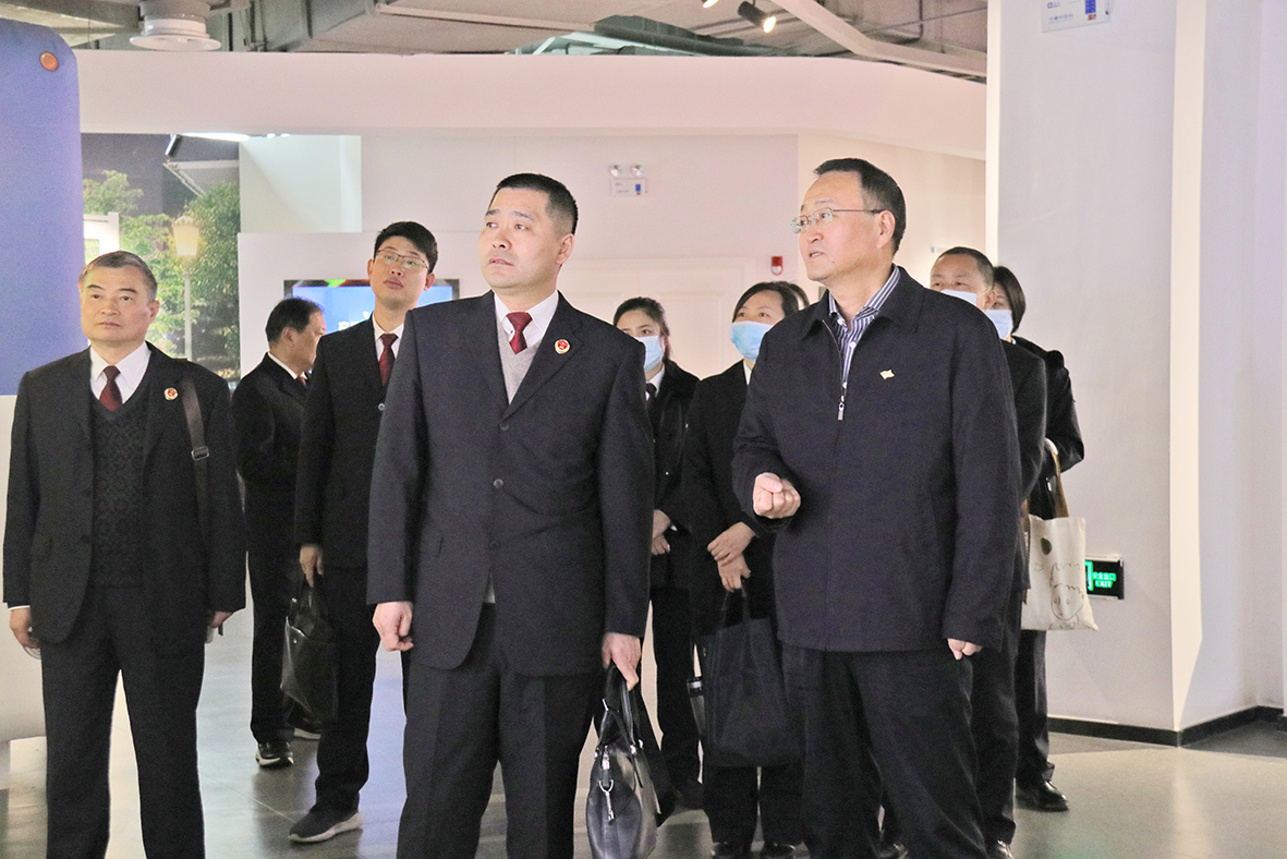 在刘宏书记的陪同下,普法宣传组一行参观了富煌集团展示中心,实地调研了企业知识产权的发展现状和需求。