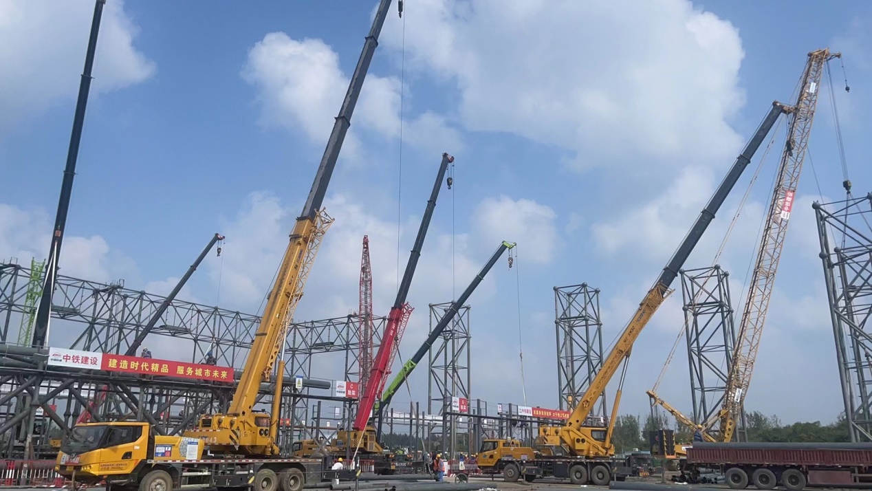 昼夜施工战犹酣,掀起大干保节点。连日来,在合肥航太雷电综合试验大厅项目的施工现场,一台台履带吊舞动铁臂,一辆辆运输车川流不息……这一曲人与机械共同演奏的“交响乐”,正是安徽富煌钢构股份有限公司一线施工作业者抢工大干谱写出的“奋斗之歌”。
