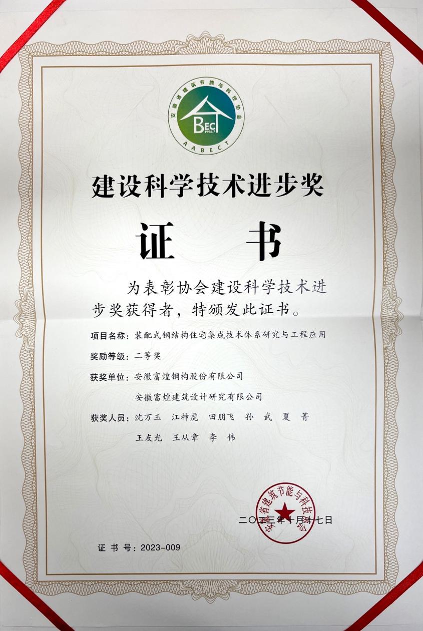 近年来,富煌钢构依托多年的钢结构领域智能制造经验和总承包项目施工经验,积极响应国家大力发展装配式建筑政策,深耕装配式钢结构建筑领域,承建了阜阳抱龙安置区、阜阳九里装配式钢结构安置区、映月湾装配式住宅小区、阜阳职业技术学院新校区项目、紫云广场装配式公共建筑等多个大型装配式示范项目,形成了一批具有行业领导性和先进性的技术成果。此次荣获安徽省建筑节能与科技协会“建设行业科技创新型企业”和“建设科学技术进步奖”,是对富煌钢构科技创新能力及成果应用能力的再次肯定,也是依靠技术进步和管理创新,推动公司向创新和高质量驱动型企业转型的又一可喜成果。接下来公司将精益求精、砥砺前行,积极践行企业使命,持续提高企业的创新能力和成果转化能力,以业务需求为基础、以智能制造技术和建筑信息化科技为手段,不断推动装配式建筑钢结构行业的发展!