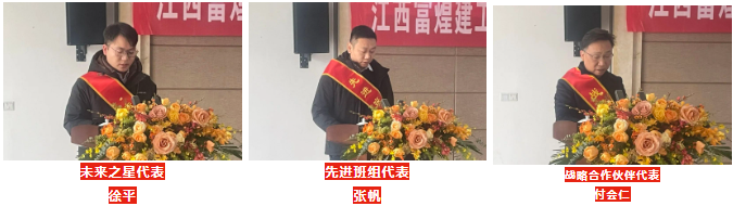 颁奖结束后,未来之星代表工程管理中心施工员徐平、先进班组代表东南事业部总监张帆、战略合作伙伴代表江西楚翔贸易有限公司董事长付会仁作典型发言。