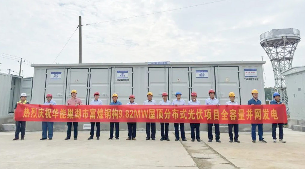 5月31日,安徽富煌电力装备科技有限公司总承包建设的华能巢湖富煌9.82MWp屋顶分布式光伏项目全容量并网发电。