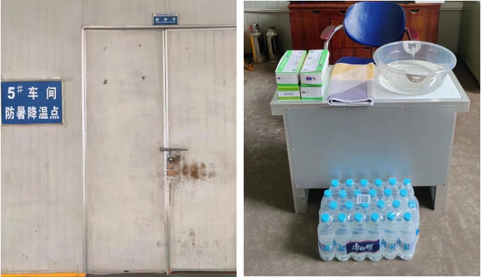 在所有车间内设置“防暑降温点”,配备防暑降温药品和用品,以便员工在高温下遇到不适时得到及时处理。针对特殊岗位员工发放防暑降温礼盒以示关怀。