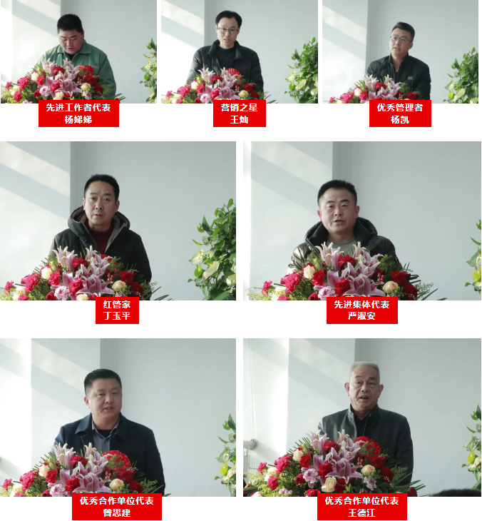 大会先后颁发了2024年度先进工作者、优秀管理者、营销之星、先进班组、先进集体、红管家以及优秀合作单位奖。先进工作者代表杨娣娣、营销之星王灿、优秀管理者杨凯、红管家丁玉平、先进集体代表严淑安、优秀合作单位代表安徽耀厚建筑工程有限公司总经理曾思建和安徽万宝玻璃有限公司总经理王德江作典型发言。