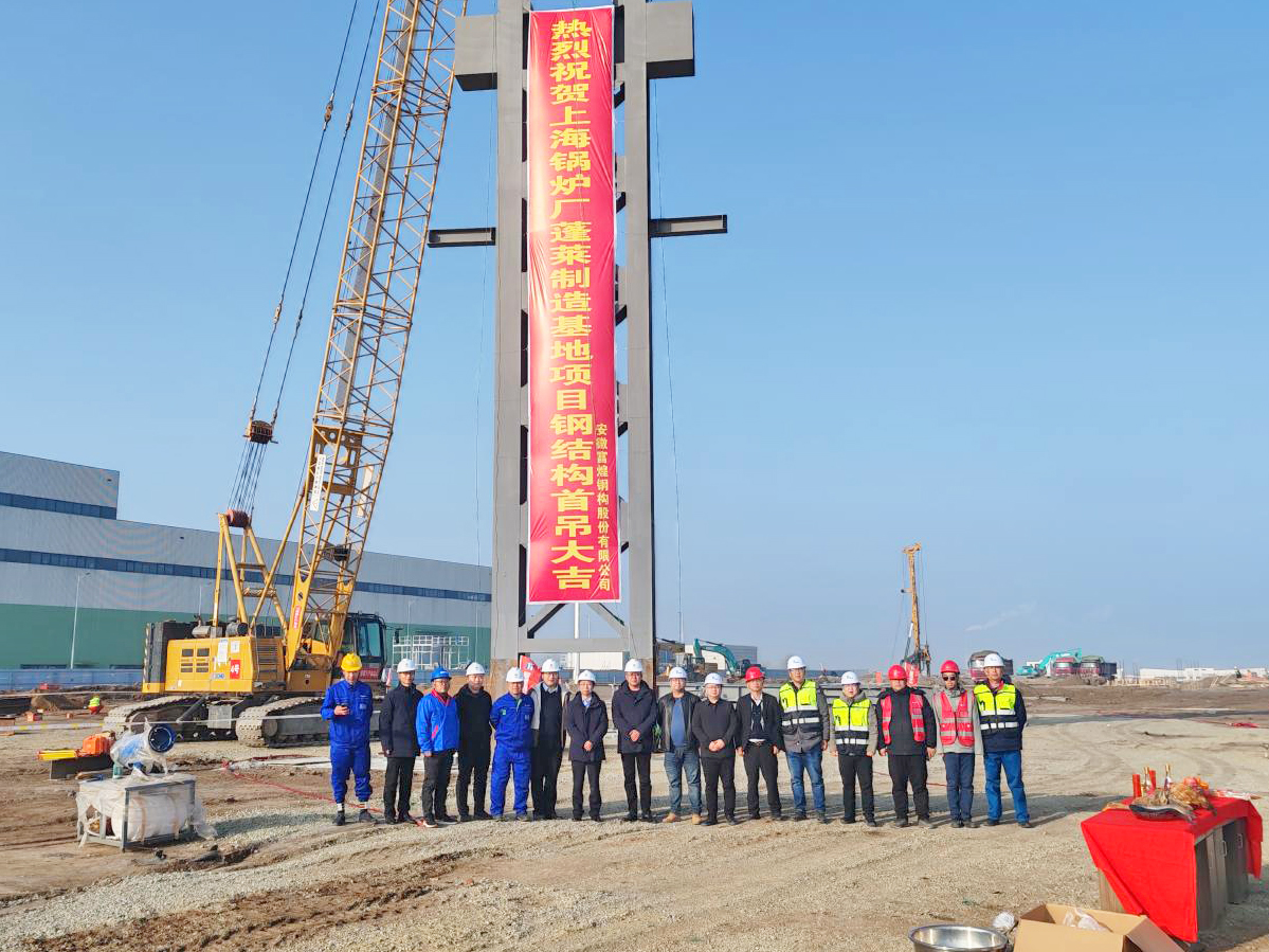 富煌钢构承建的蓬莱大型高端装备制造基地项目钢结构首吊顺利完成