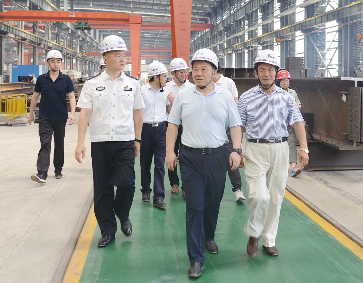 7月15日,安徽省委常委、合肥市委书记宋国权在巢湖市委书记耿延强,巢湖市委常委、常务副市长夏群山的陪同下莅临安徽富煌钢构股份有限公司考察指导,富煌钢构董事长杨俊斌全程陪同参观。
