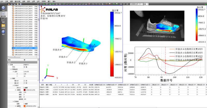 该系统为我司自主研发的重大技术装备,利用高速摄像机对运动鞋在人体运动及外界环境冲击过程中的形变过程进行图像采集,运用高速图像解析软件对获取的运动鞋形变图像进行分析解算,得到运动鞋的整体或者局部材料形变结果数据,为运动鞋产品的研发提供图像和数据分析支持。