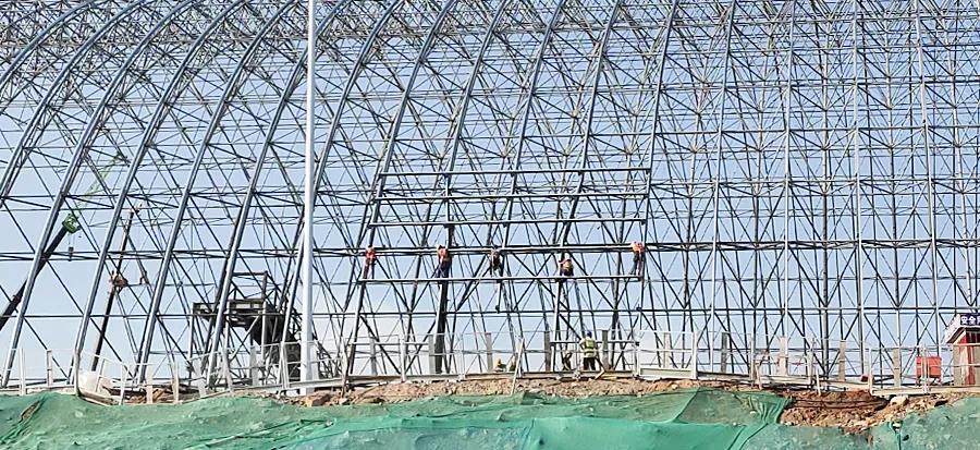 近日,由江西省富煌钢构有限公司参建的南水北调中线雄安蓄库骨料加工系统金结制安三标项目成品料仓网架工程顺利完工。江西富煌抢抓工期节点、狠抓工程质量,在工程建设过程中积极配合监理工作、主动解决疑难杂症、决心确保项目顺利完工的态度,受到业主方的肯定与感谢!
