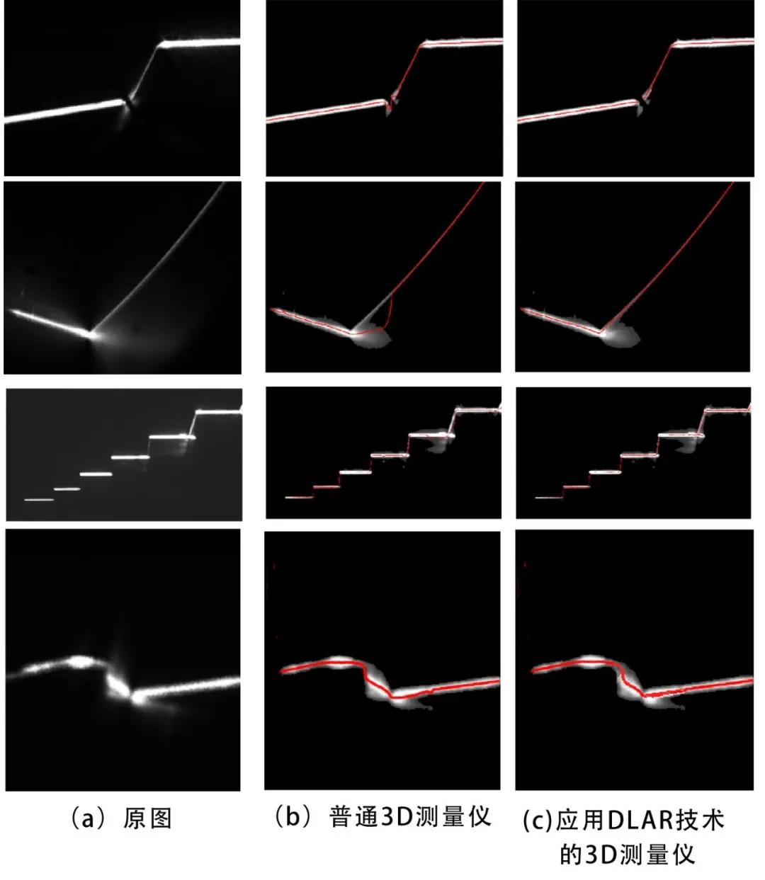 应用DLAR深度智能抗反光技术的3D测量仪,比单纯的中心线提取方法处理得到的中心线结果精度更高,也更具有稳定性,在实际场景的处理中具有重要使用价值。