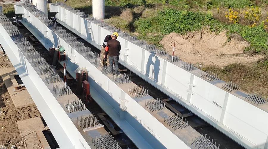 钢板组合梁整体采用30m、31m、40m、50m的简支梁,为顺利做好首榀钢板组合梁的吊装工作,解决吊装过程中存在的平面外刚度差、重心高、安全风险大、地质条件差、施工难度大、精准对位要求高等难题,项目部制定了严密详实的吊装专项施工方案,充分考虑到架设过程中可能出现的各种异常情况以及应对措施,并且反复修改优化,细化分工,落实责任,确保每一步程序、每一个环节卡控重点均有专人盯控,从而保证了首榀钢板组合梁精准安全就位。