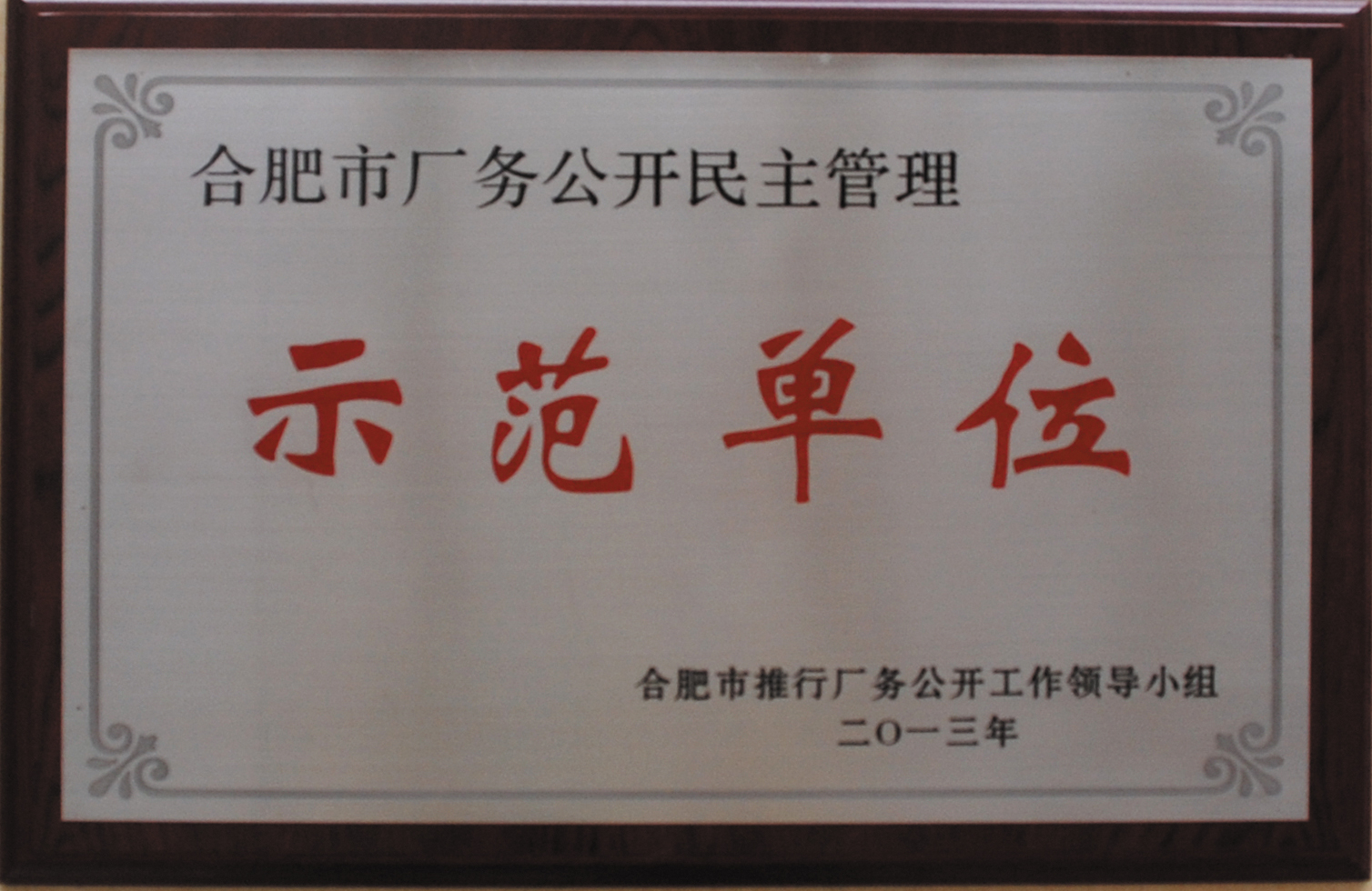 富煌集团荣获“合肥市厂务公开民主管理示范单位”称号