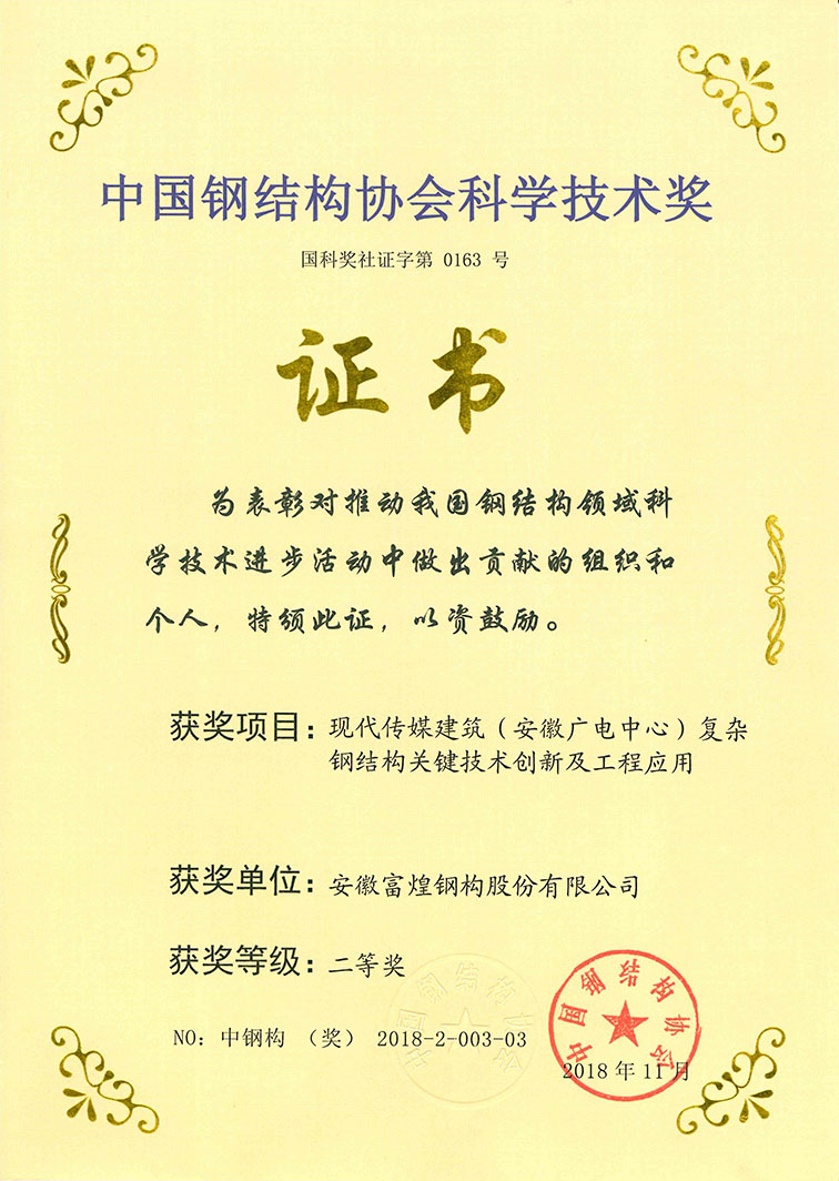 2018中国钢结构协会科学技术二等奖