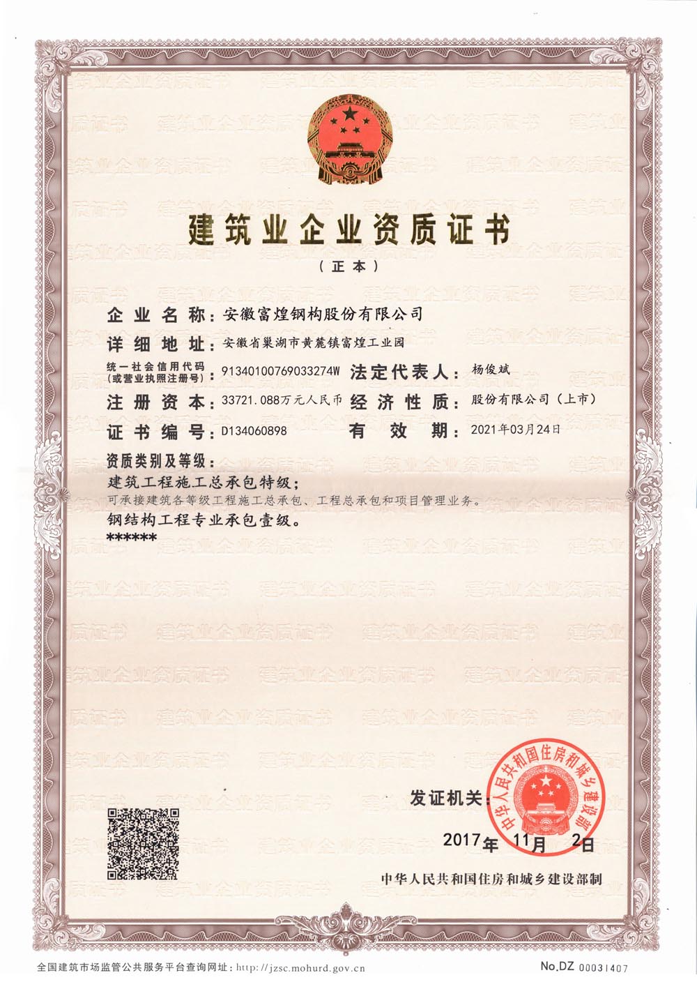 安徽富煌钢构股份有限公司安徽省钢结构协会会长单位