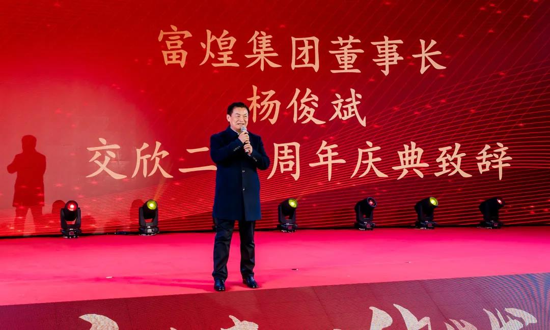 在热烈的掌声中,富煌集团董事长杨俊斌致辞。杨俊斌表示,交欣科技的发展,离不开党和国家对民营企业的扶持、离不开全体员工的殷勤付出、离不开公司高管的正确带领。他强调,我们要始终坚持科技引领、实业报国的发展理念,积极发扬艰苦奋斗、创业不止、创新不止的精神,走好科学发展的道路。新一代富煌人要传承好富煌精神,为家乡的发展,为国家的建设,贡献自己的力量!