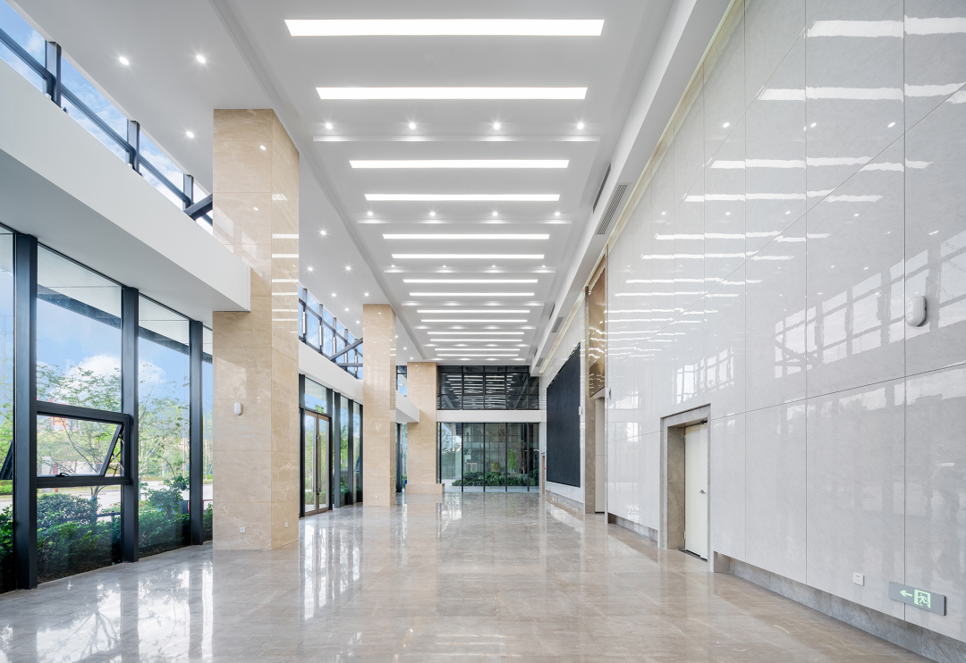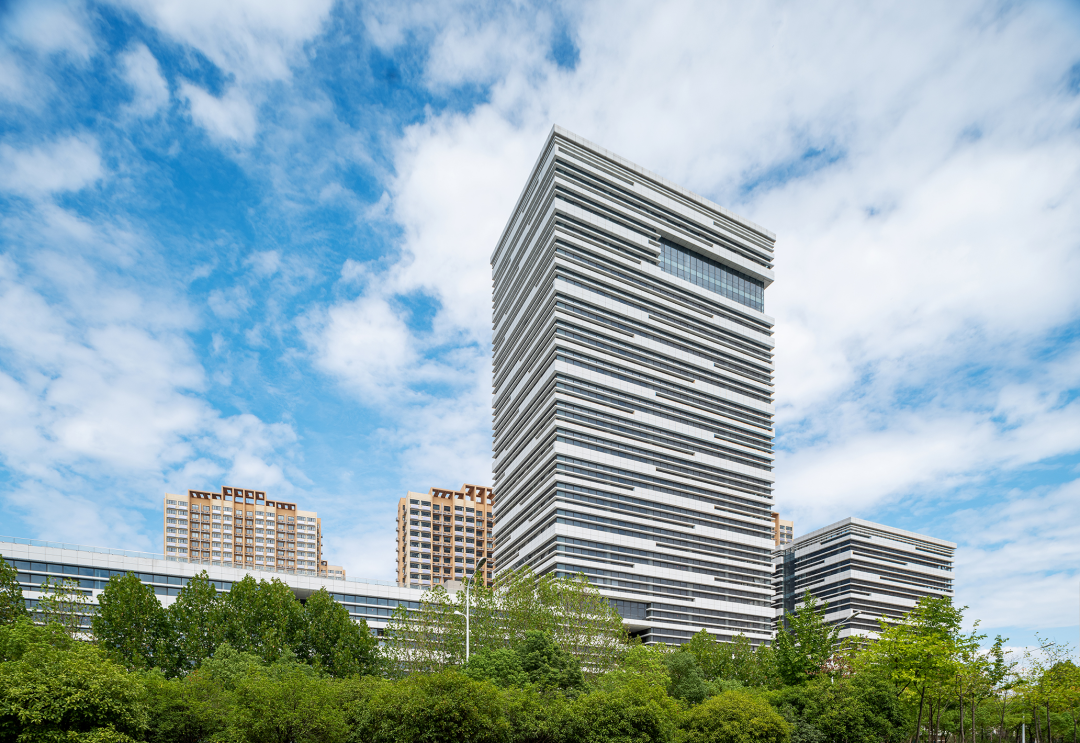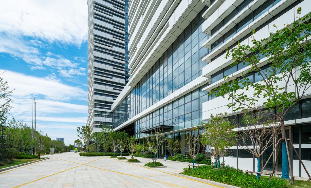 内部空间设计舒适温馨,每个楼层结合功能设置休息交流区、咖啡吧等,创造满足身心健康、人性化、生活化的场所。设计通过广场绿化、下沉庭院、平台绿化、空中花园绿化、屋顶绿化,结合乔木、灌木、花卉、草坪等各类适地性植物,创造多维空间绿化效果。