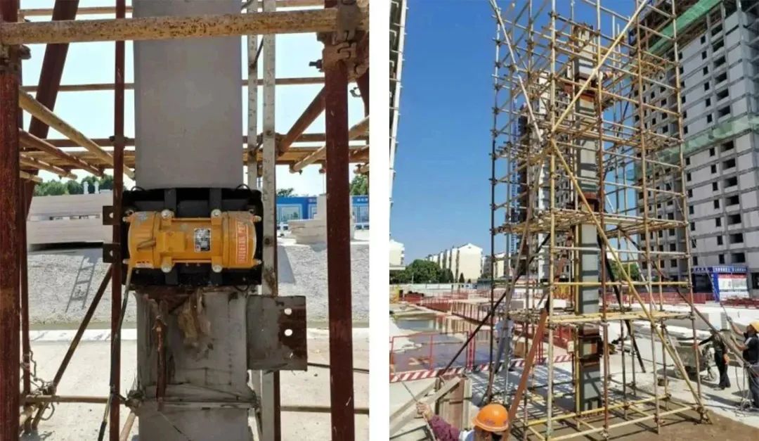 提出了具有标准化连接节点的钢管混凝土柱高抛自密实混凝土振捣施工工艺,在标准化连接节点的横隔板节点处设置附着式振动器,经过模拟现场施工场景,调试最佳振动频率,使得自密实混凝土在横隔板拐角处具有良好的充填性、保塑性,达到能够自动填充的目的,该技术在工程实施中取得了巨大的提质增效作用。