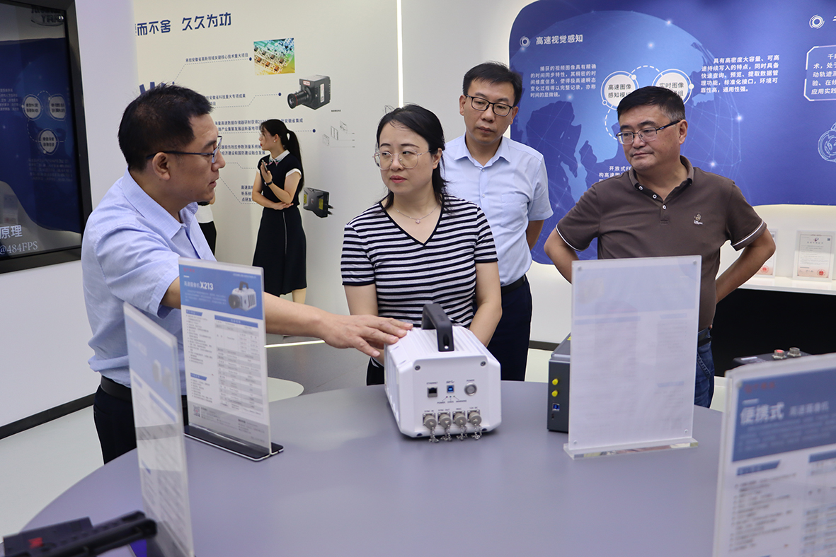 陈娟娟一行参观了富煌新视觉展示中心,企业负责人详细介绍了新视觉各产业发展、技术应用领域和自主创新技术成果转化的情况,并着重对芯片制造等方面的问题进行了汇报。