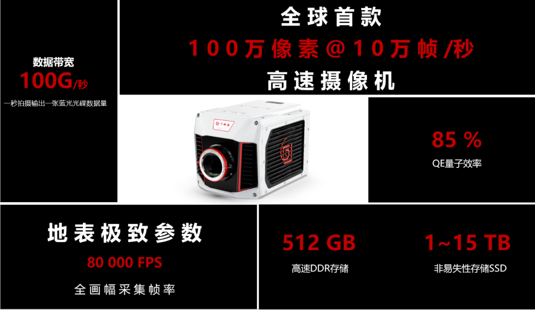 千眼狼ACE超高速摄像机以“地表极致参数”刷新行业标准:支持100万像素下10万帧/秒的超高速拍摄,数据带宽高达100G/s,量子效率85%,并搭载512GB高速存储模块与最大15TB非易失性存储。其性能全面超越国际主流品牌,支持捕捉1/10,000,000秒的瞬态现象,助力人类探索微观与高速世界的未知边界。