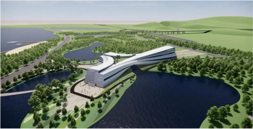 该项目位于江西省九江市濂溪区八里湖大道南侧,总投资约10亿元,占地面积约70亩,总建筑面积约4.5万平方米,采用钢结构框架体系。施工中的主要技术难点集中在馆内球体结构以及大跨度桁架区域,其中单榀桁架最大长度达57米,重量达276吨。