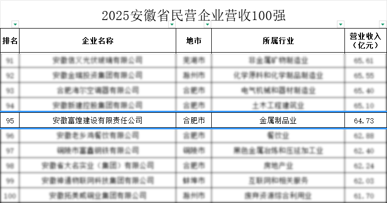 富煌集团双榜题名|荣登2025安徽省民营企业营收百强与制造业百强榜单​​
