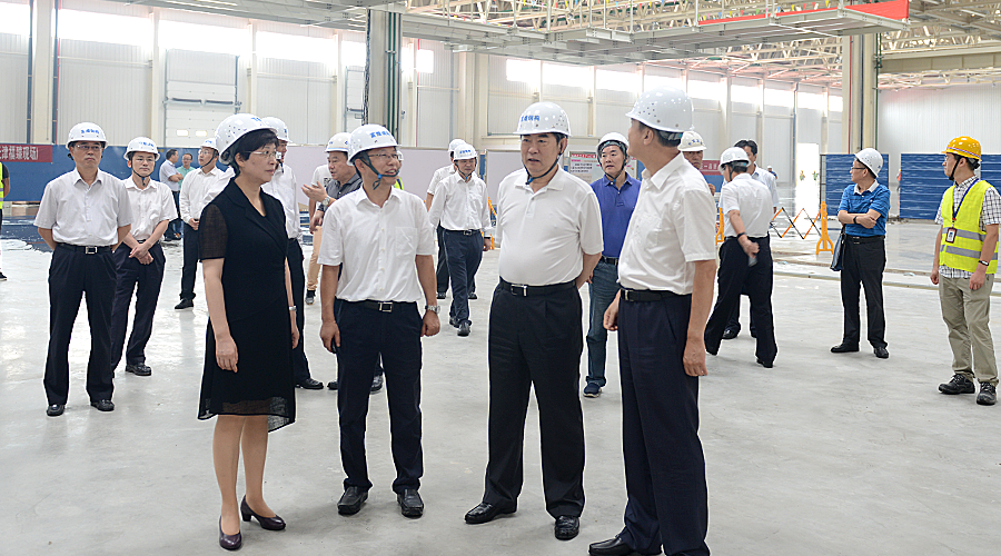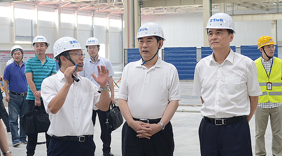 邓向阳一行首先视察了冲焊联合厂房,详细询问了项目的进展情况、计划投产情况、目前遇到的困难以及后期配套安装情况。对公司在如此短的时间能够有如此建设成果,邓向阳一行表示了高度赞扬,同时对公司的现场质量、文明施工表示非常满意。