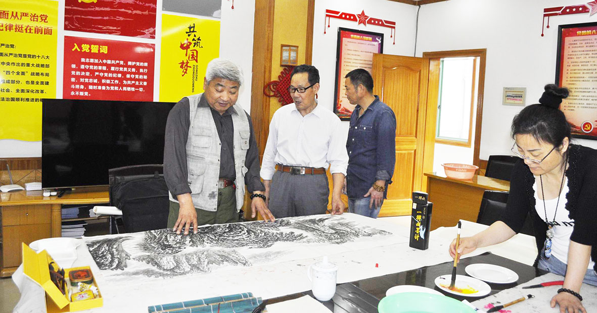为丰富富煌员工的文化生活,活跃企业文化氛围,5月5日,南京艺海潮书画院书画家一行10人在副院长方秀伦的率领下莅临富煌集团传经送宝。