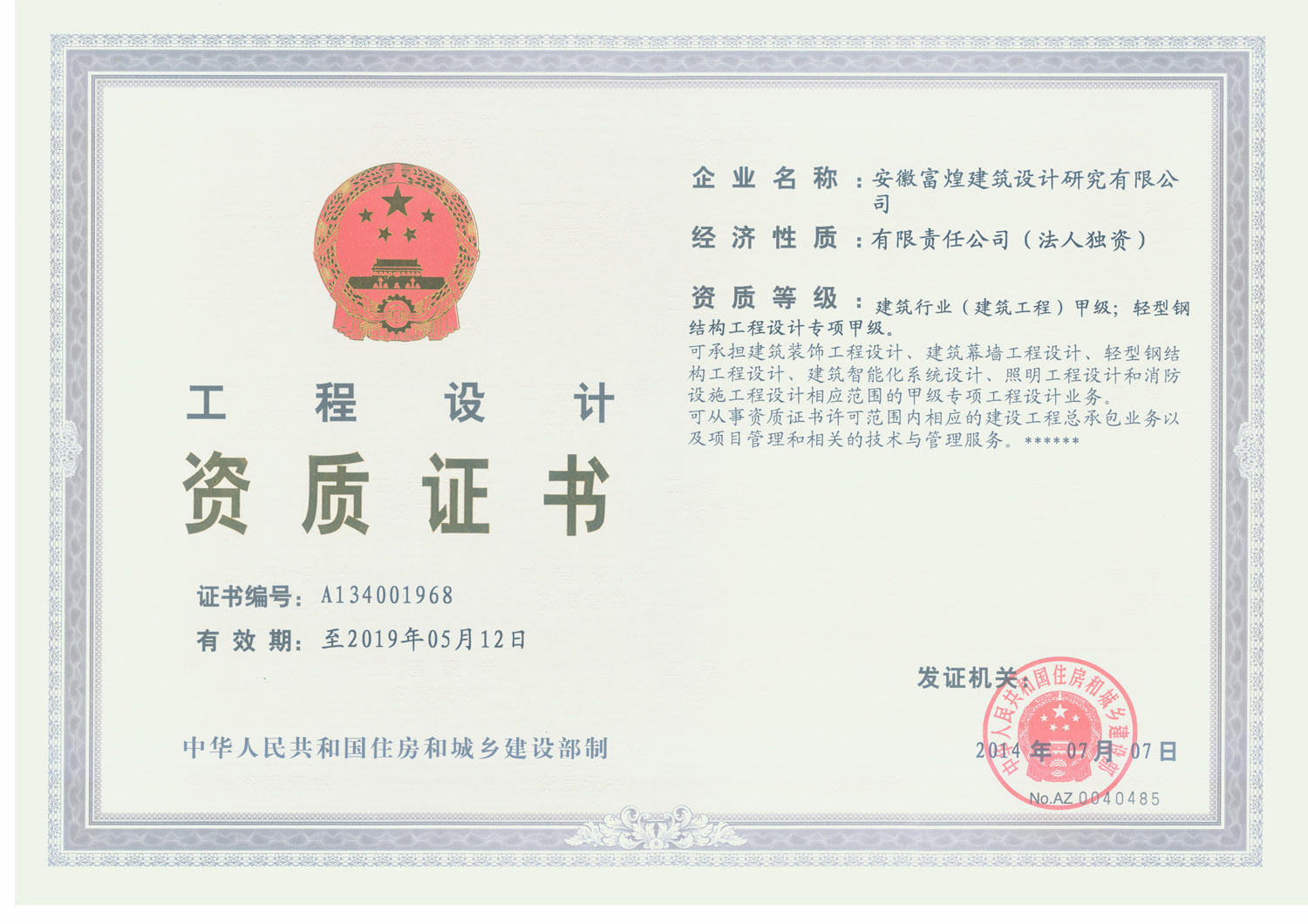 安徽富煌建筑设计研究有限公司建筑行业甲级资质